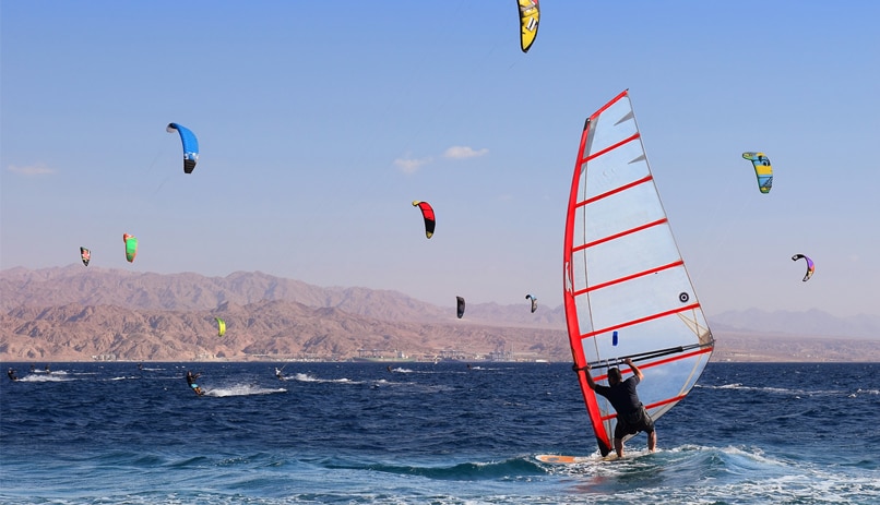 Mind you, it’s not always necessary to cross borders in order to experience new things, and weather rules are not the only ones abolished in Eilat. Other rules that don’t really apply here are the rules of gravity. Eilat poses no limits for the extreme addicts: wanna wind surf? Fine. Kite surf? No problem. Parasail? Go for it, sis. Skydive? Got it, bro. It’s all one phone call away. Make a reservation with one of the many agencies in town and get going.