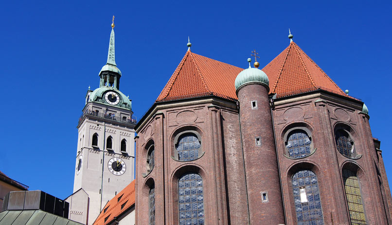 אבן היסוד של הקתדרלה של מינכן (Frauenkirche) הונחה בשנת 1468 והמבנה העצום הושלם בזמן שיא – 20 שנה בלבד. המבנה המונומנטלי, בגובה 190 מטר, מתנשא מעל גגות העיר, כשעל פי חוק שום בניין אינו מורשה להסתירו.