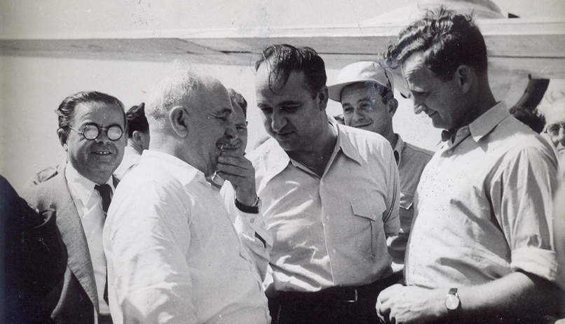 לפני ההמראה לג’נבה: אהרון רמז, בר כוכבא מאירוביץ’ ודוד רמז